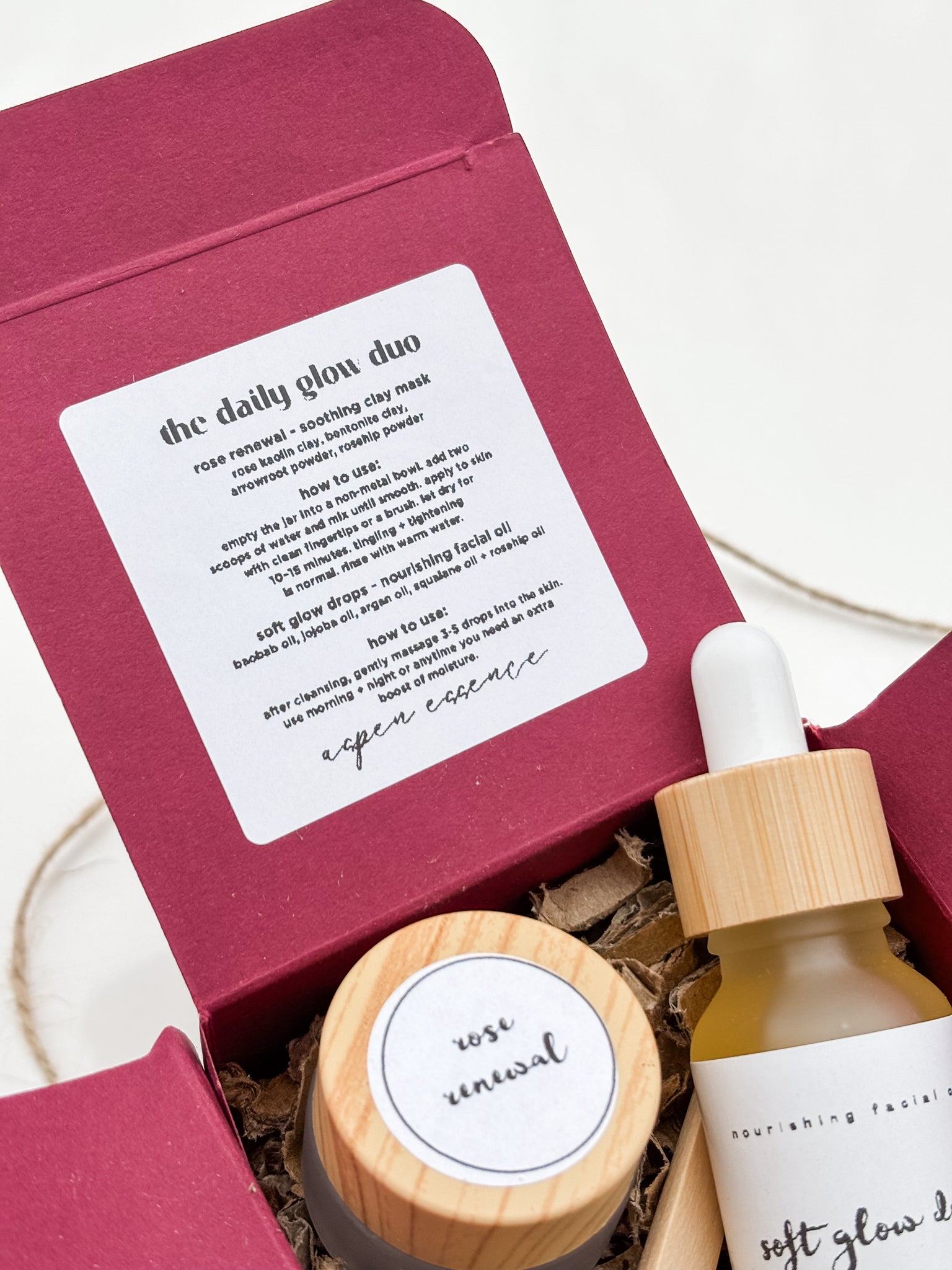 a simple yet luxurious two-step ritual designed to refresh, nourish, and restore your natural glow. this beautifully packaged duo features two of our bestselling facial treatments, perfect for gifting or treating yourself to a moment of everyday self care.