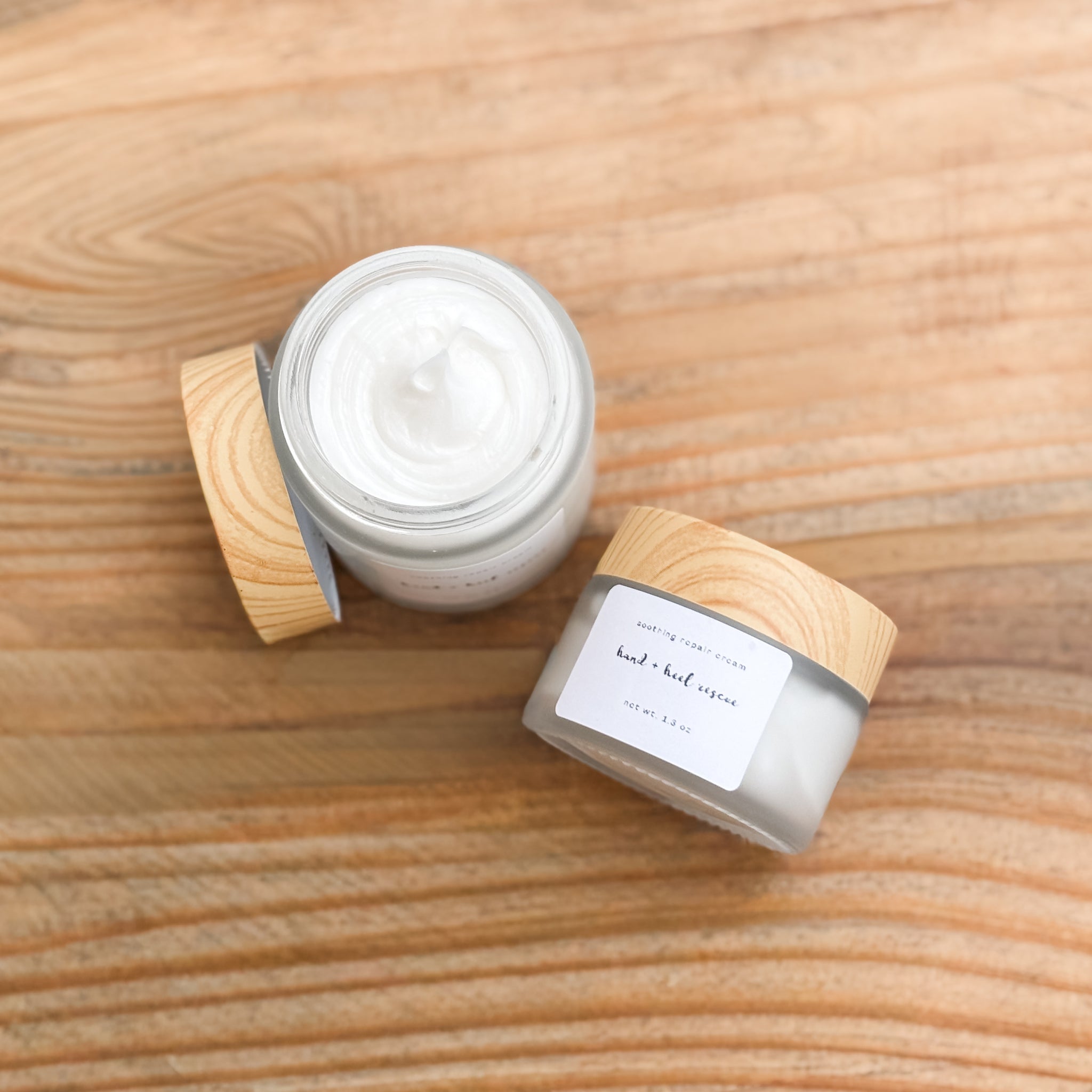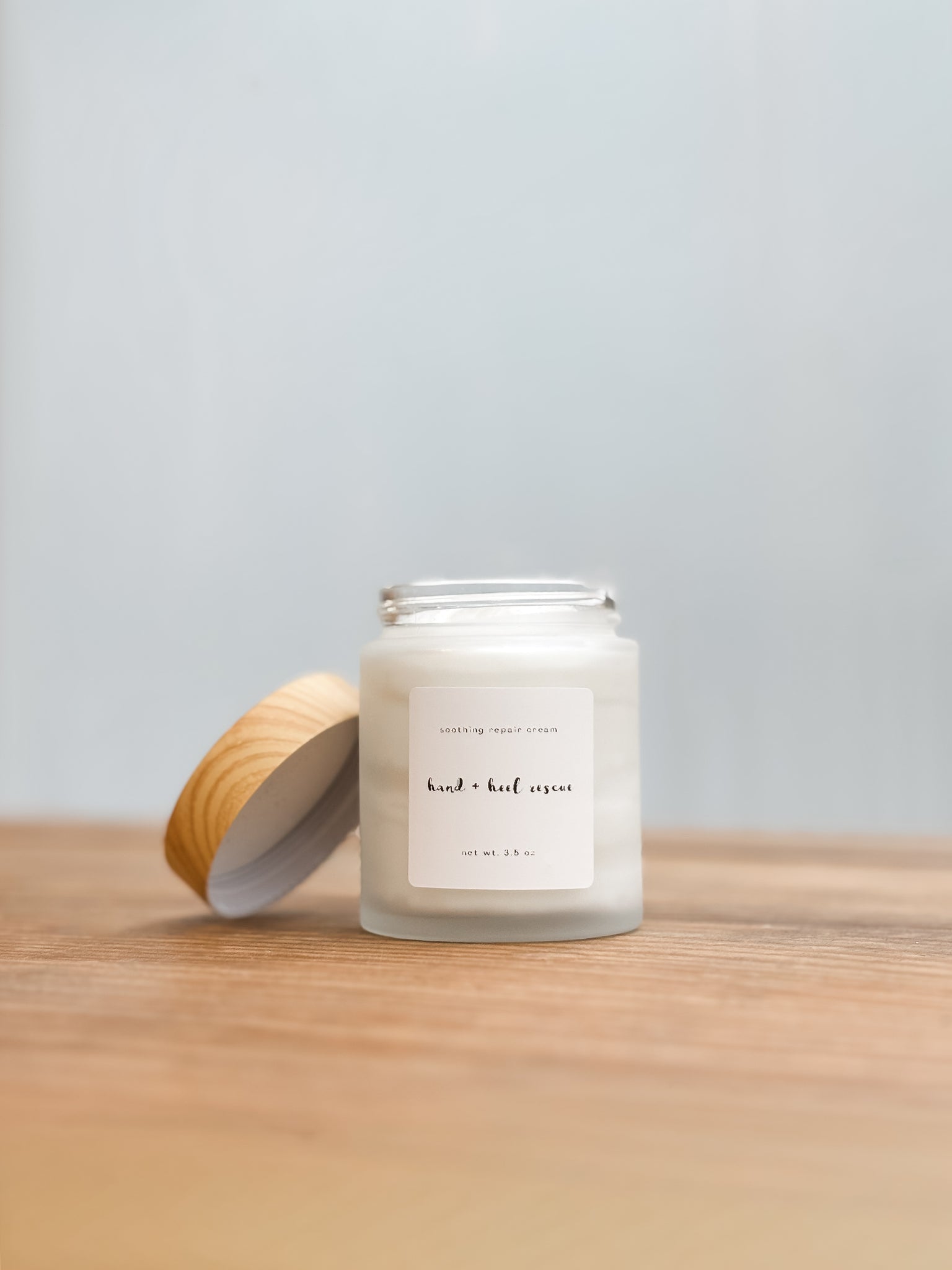 our hand + heel rescue cream is rich with natural, restorative ingredients. this formulation is designed to soothe stressed out, dry, and cracked skin, making it perfect for use on the hands, feet, or anywhere else you need a little extra hydration!