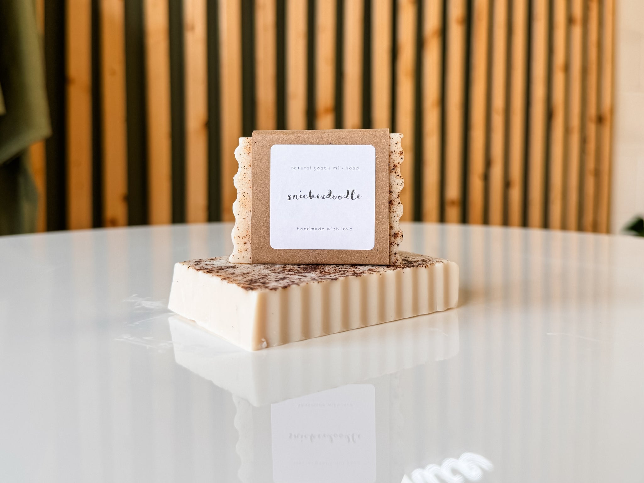 snickerdoodle is one of our best gentle exfoliation bars! this soap smells like soft, freshly baked cookies + cinnamon.