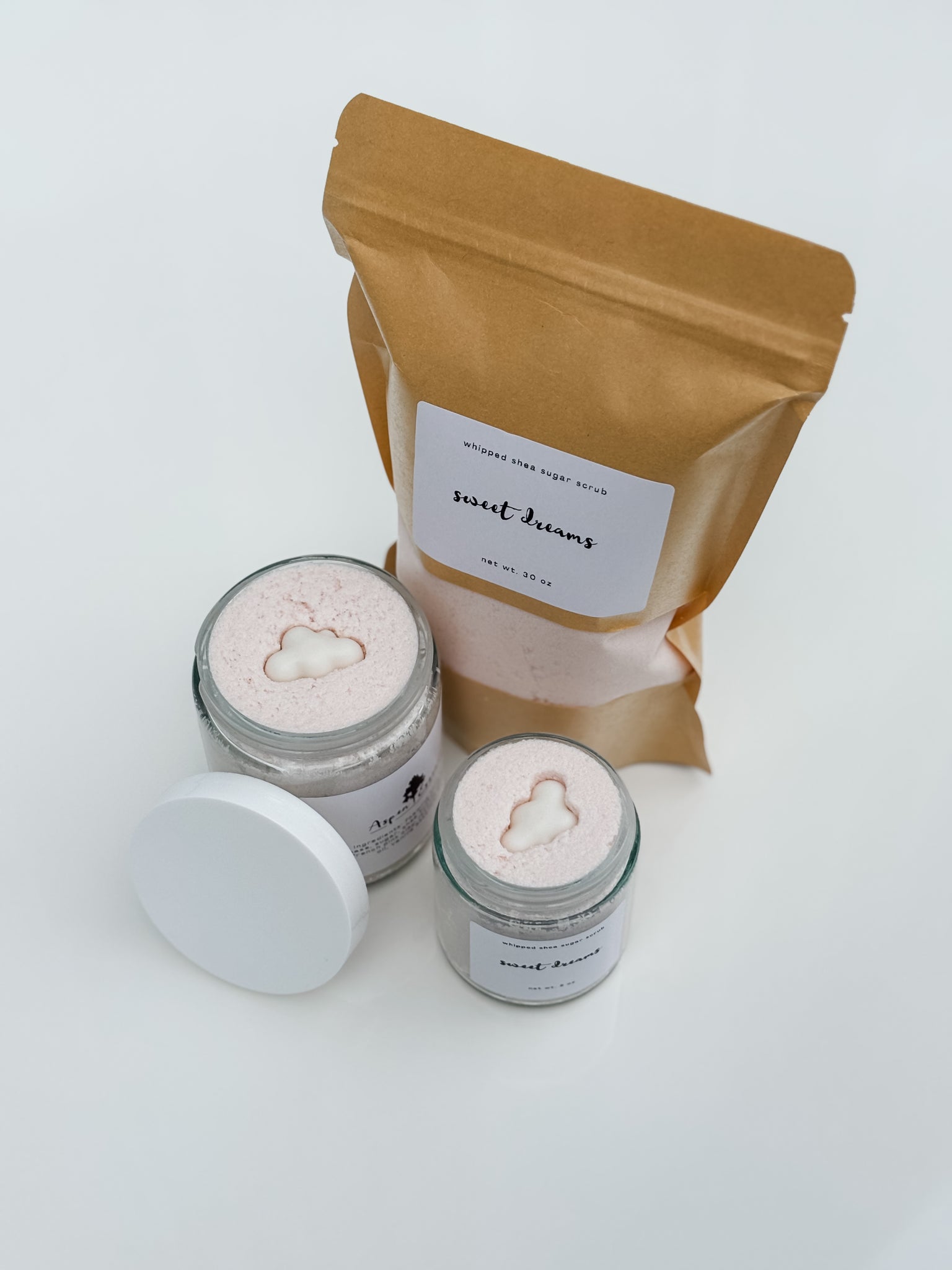 sugar scrubs come in reusable 5 ounce (sample size) and 10 ounce ( full size) glass jars, as well as in 30 ounce bulk refill bags. all jars are made with 50% recycled glass! since all products are handcrafted in small batches, they may differ slightly in appearance. curious about our bases? see here for more info.